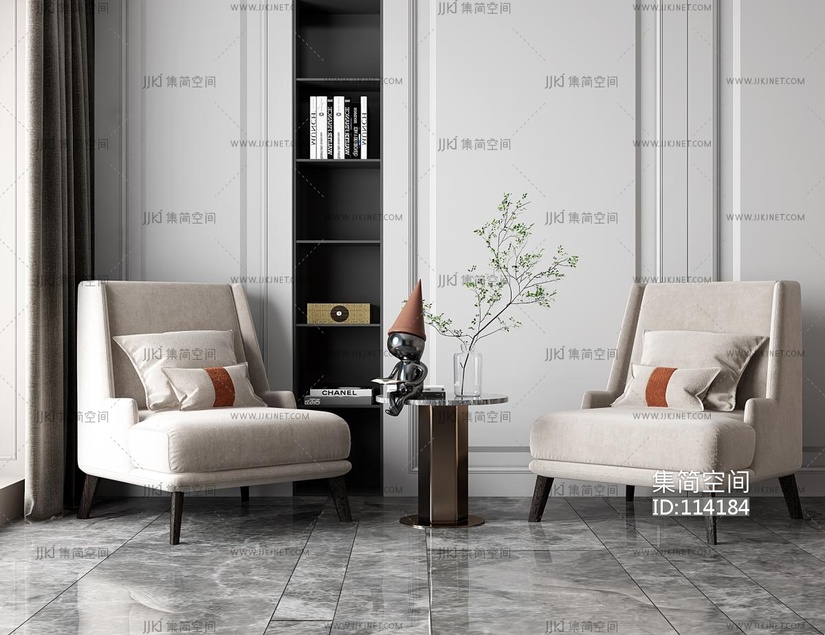 现代 单人休闲沙发座椅 边几 3d模型下载 [模型ID:114184]