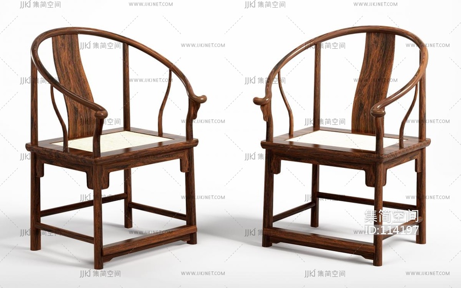 中式古典实木圈椅单椅 圈椅 3d模型下载 [模型ID:114197]