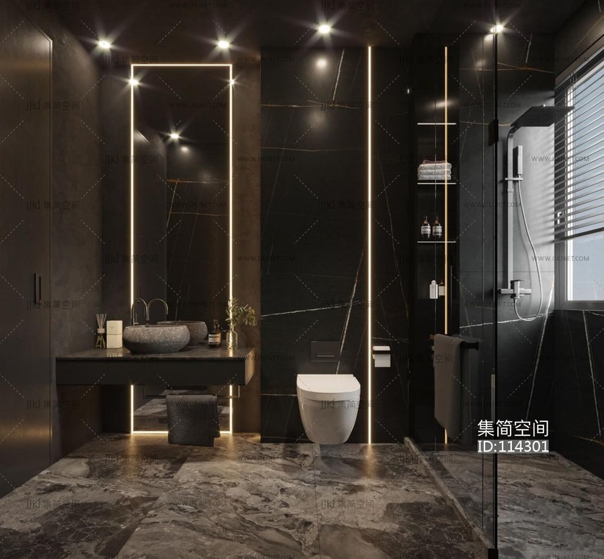 法式奶油风卫生间_洗手盆_马桶抽纸盒花瓶3D模型3d模型下载
