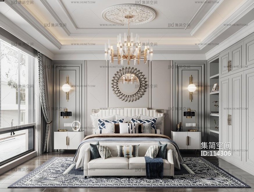 美式简欧式法式家居卧室 3d模型下载 [模型ID:114306]