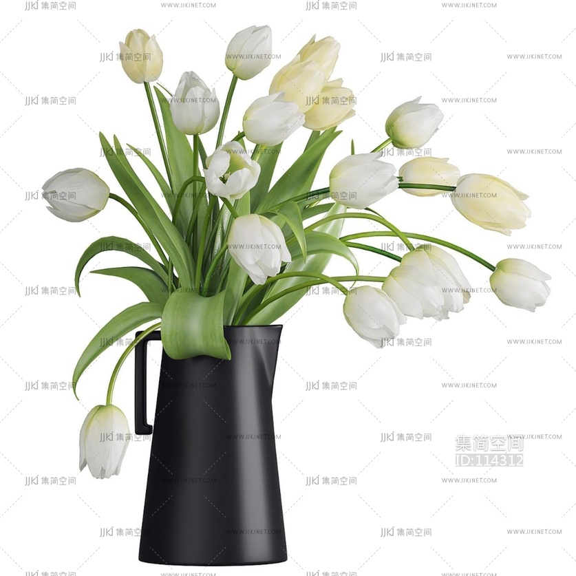 现代花艺__玻璃花瓶_鲜花_插花_装饰摆件3D模型3d模型下载