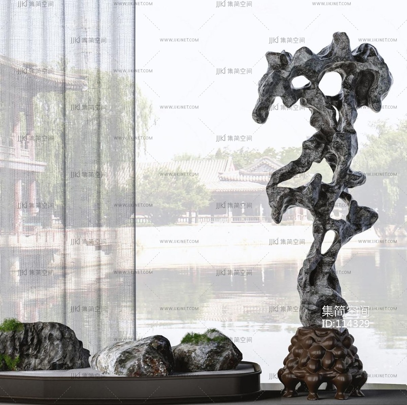 新中式太湖石雕塑 3d模型下载 [模型ID:114329]