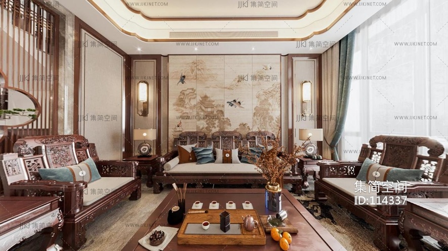 中式古典红木家具客餐厅 3d模型下载 [模型ID:114337]