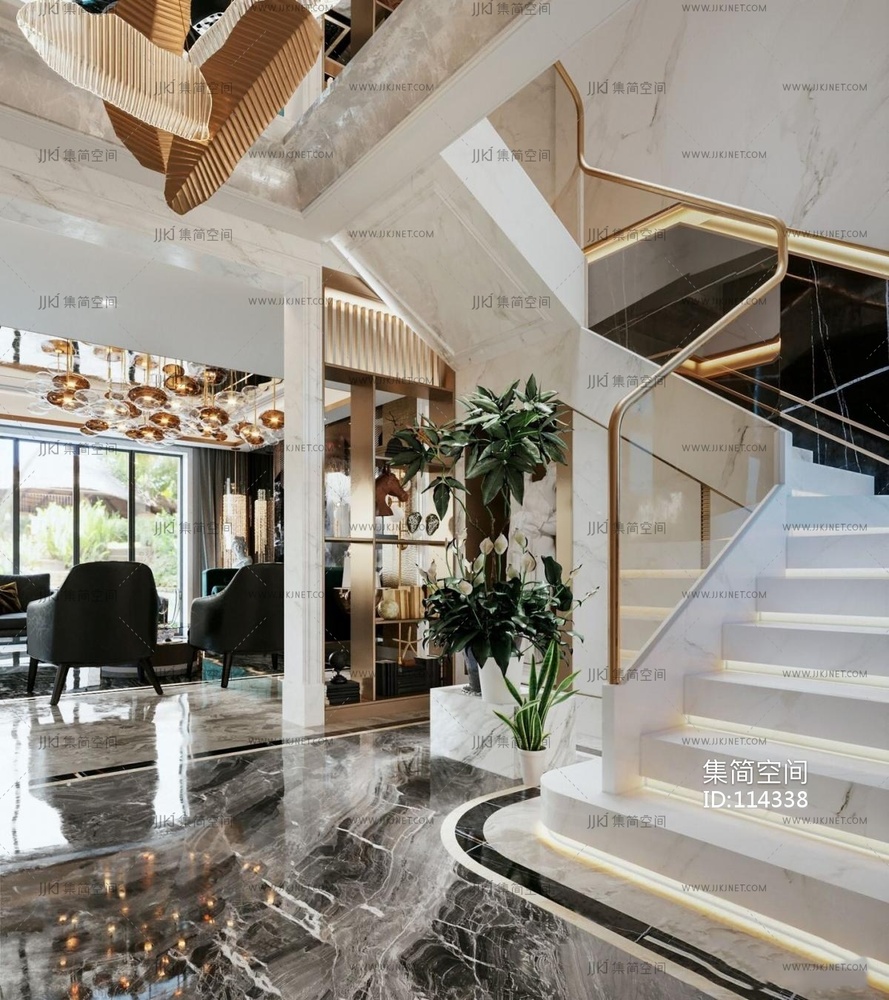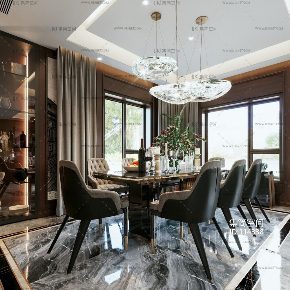 现代轻奢客餐厅 3d模型下载 [模型ID:114338]