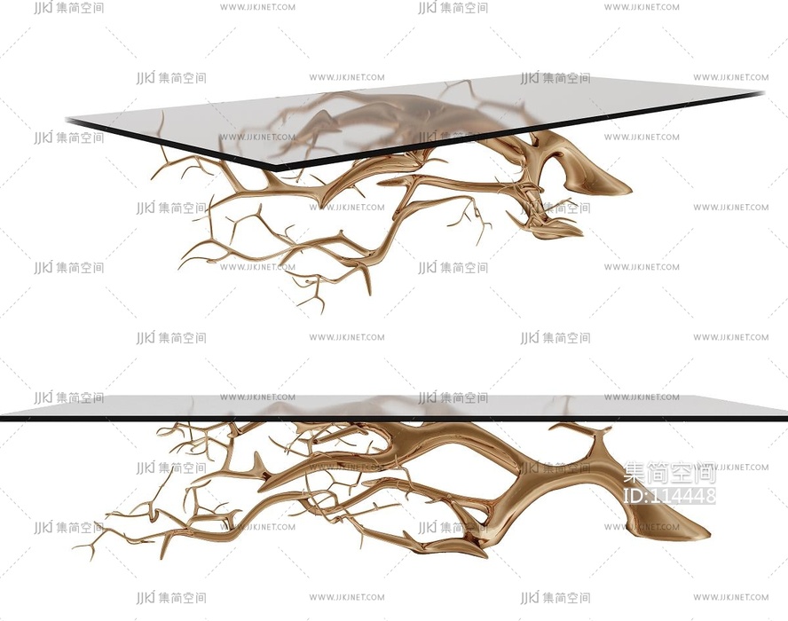 现代金属树枝玻璃茶几 3d模型下载 [模型ID:114448]