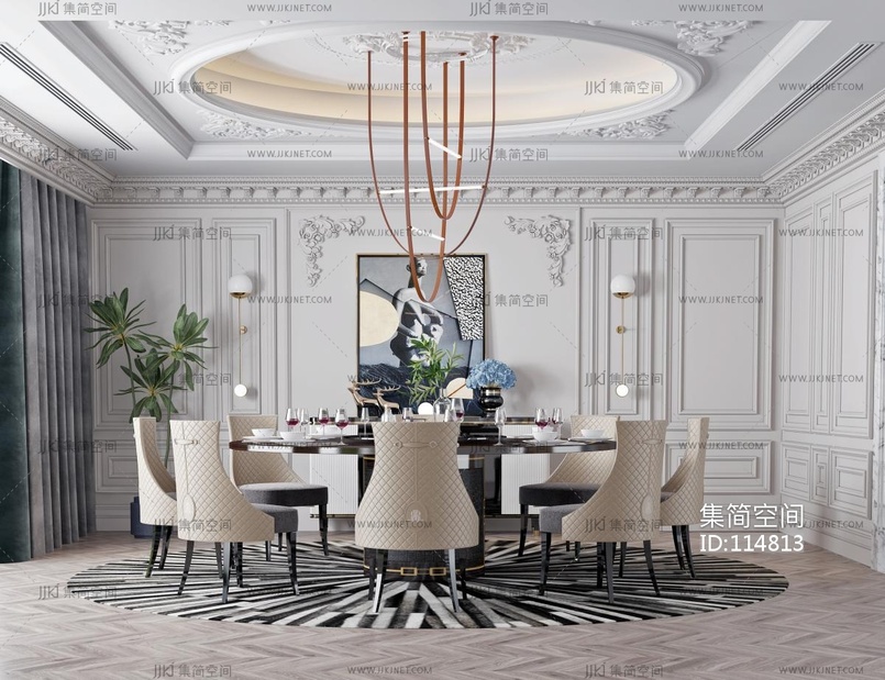 简欧式餐厅 3d模型下载 [模型ID:114813]