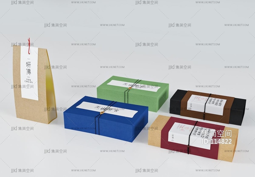 新中式茶叶包装盒 手提袋 3d模型下载 [模型ID:114822]