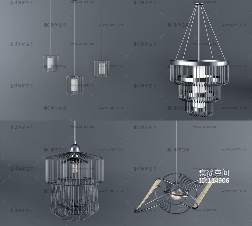现代铁艺吊灯组合 3d模型下载 [模型ID:114906]