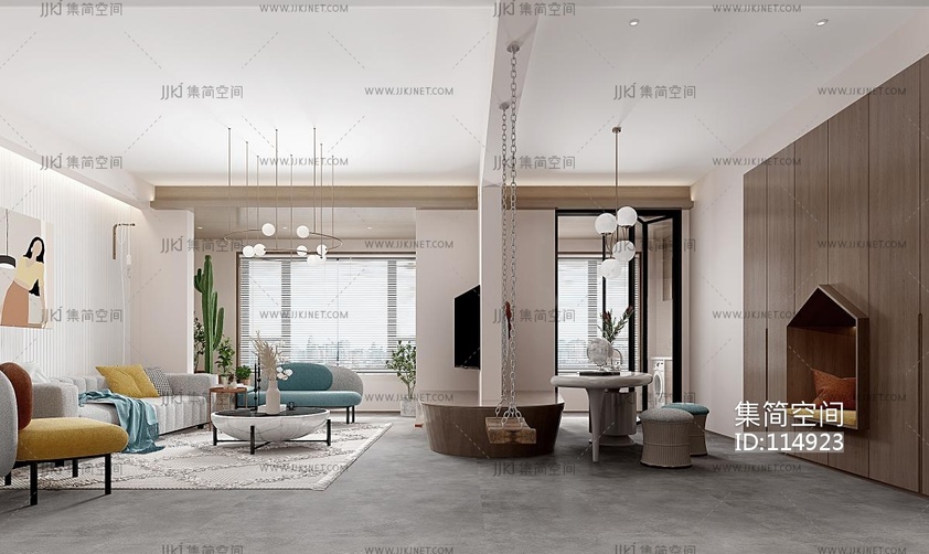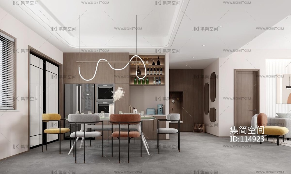 北欧轻奢客厅餐厅 3d模型下载 [模型ID:114923]