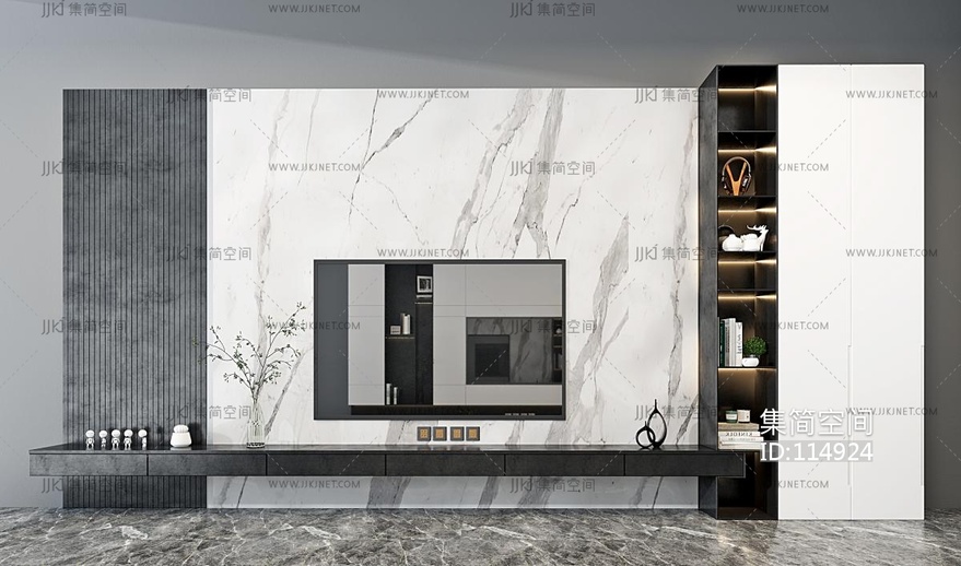 现代电视背景墙 3d模型下载 [模型ID:114924]