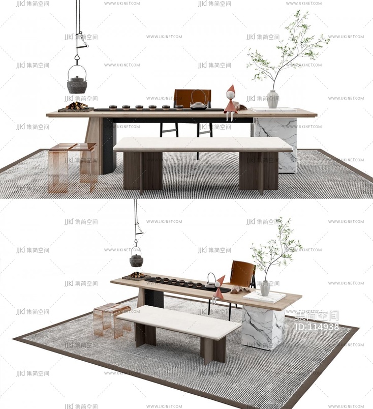 侘寂风茶桌椅, 3d模型下载