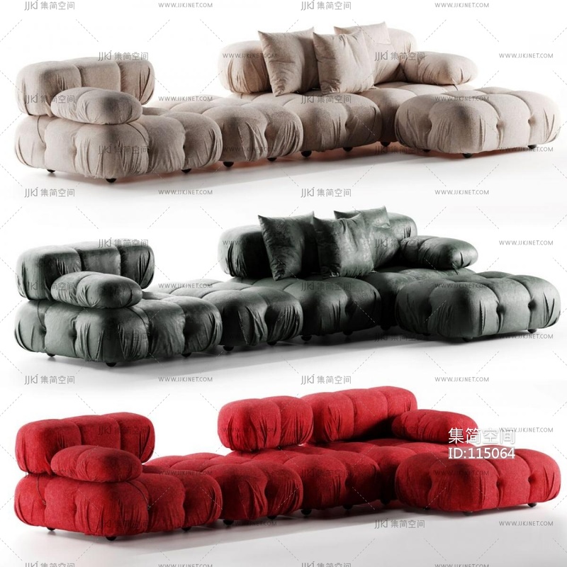 现代绒布转角多人沙发 3d模型下载 [模型ID:115064]