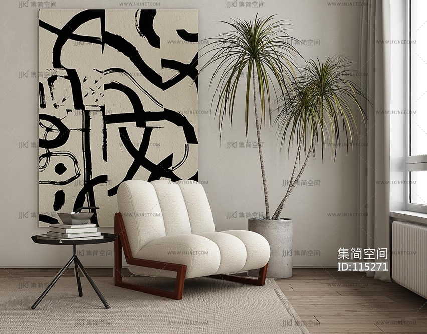 侘寂风布艺休闲椅 3d模型下载 [模型ID:115271]