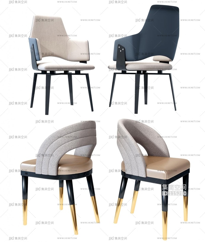 现代餐椅_单椅组合_休闲椅椅子3D模型3d模型下载