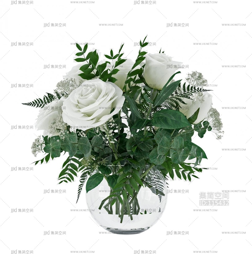 现代花艺__玻璃花瓶_鲜花_插花_装饰摆件3D模型3d模型下载