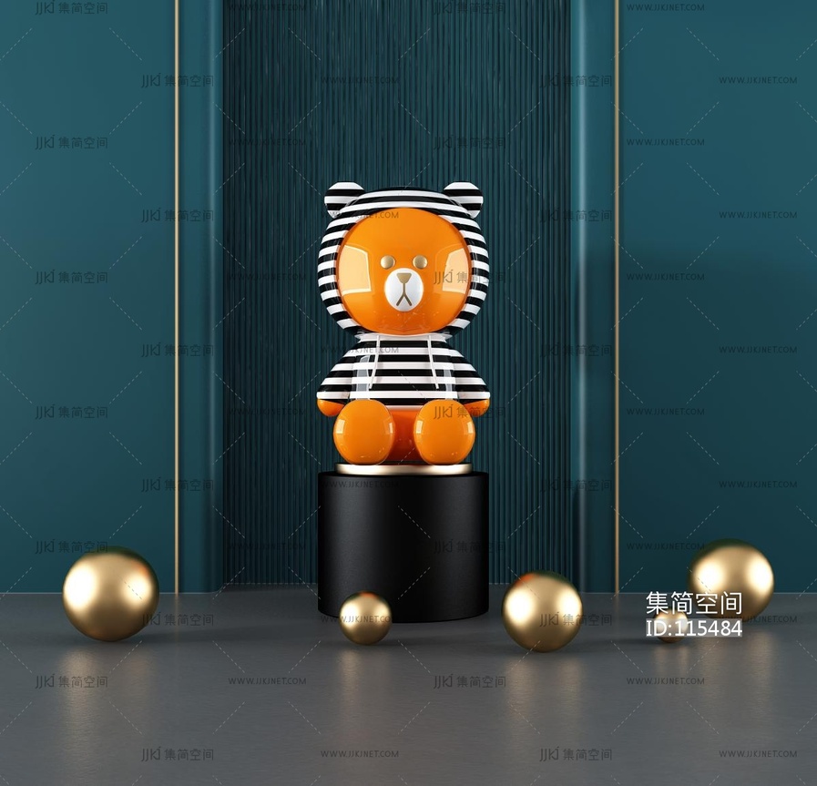 现代网红小熊雕塑 摆件 3d模型下载 [模型ID:115484]