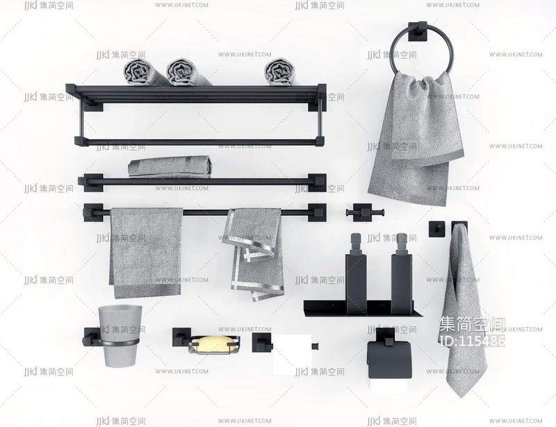 现代洗浴用品_毛巾_毛巾架_层架 3d模型下载 [模型ID:115486]