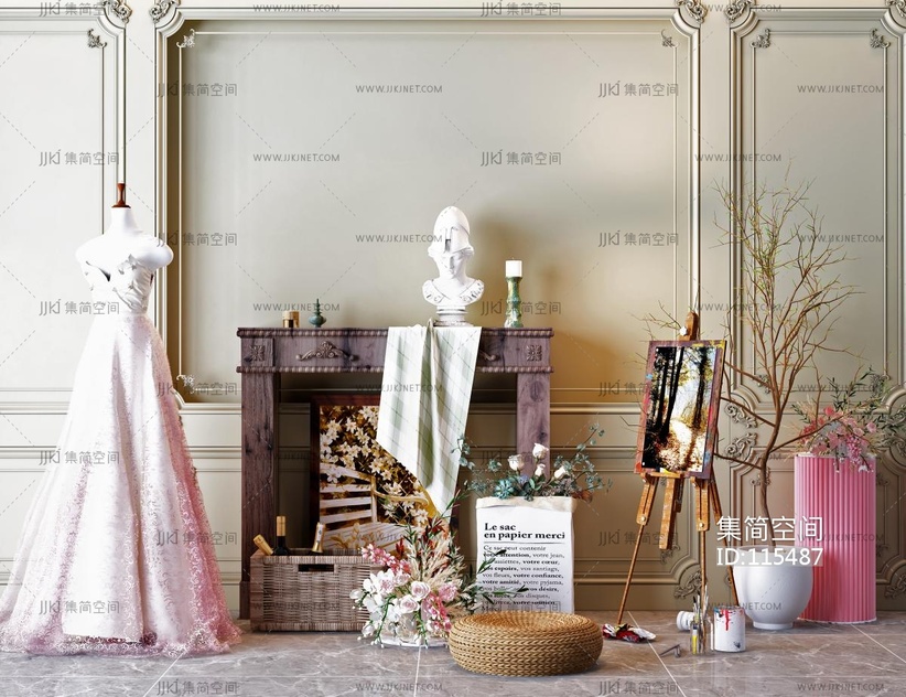 现代鲜花 壁炉 婚纱 摆件 美陈 装饰品 3d模型下载 [模型ID:115487]