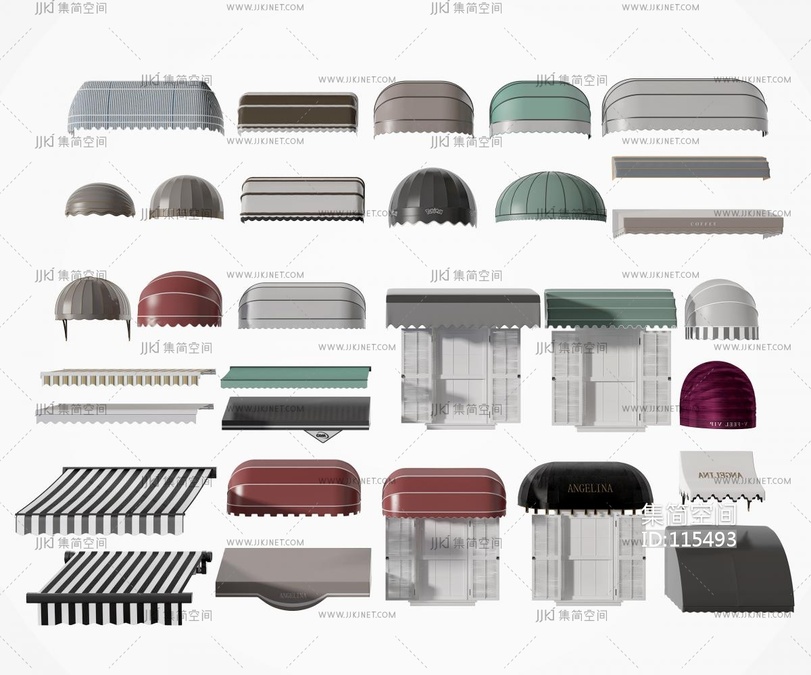 现代布艺遮阳篷套装 kitbash3d模型下载