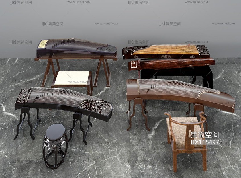新中式娱乐空间 古琴 古筝 3d模型下载 [模型ID:115497]
