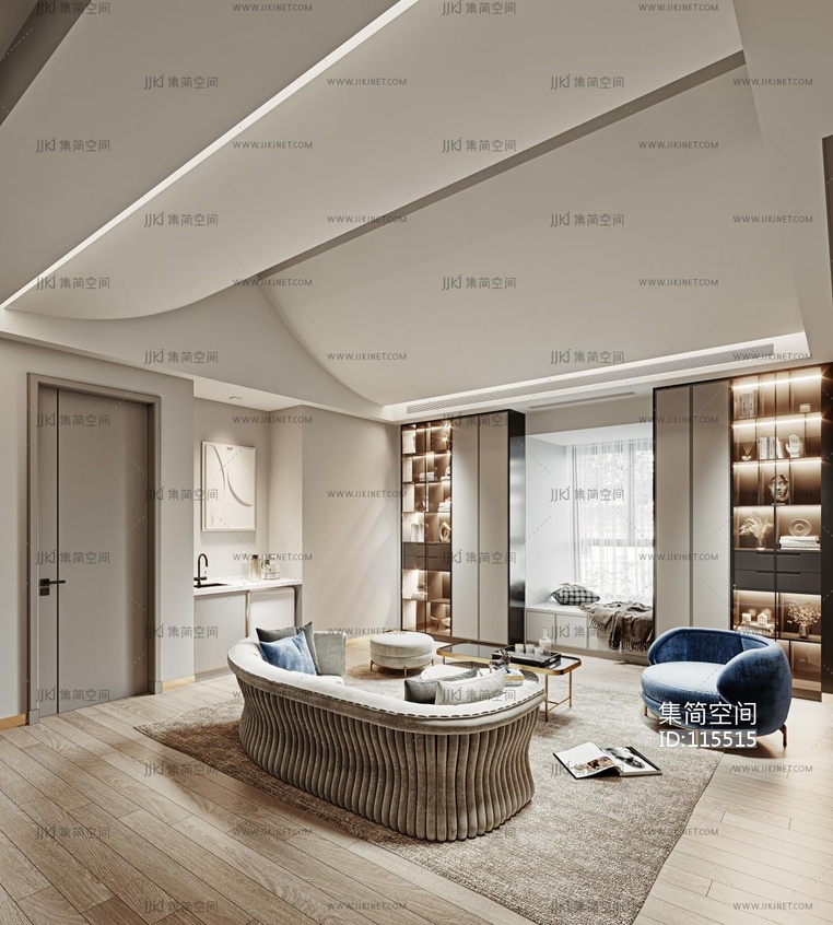 中古风客厅 沙发茶几组合 背景墙3d模型下载