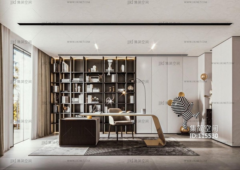 现代书房,书桌椅,书柜亚克力座椅,3d模型下载