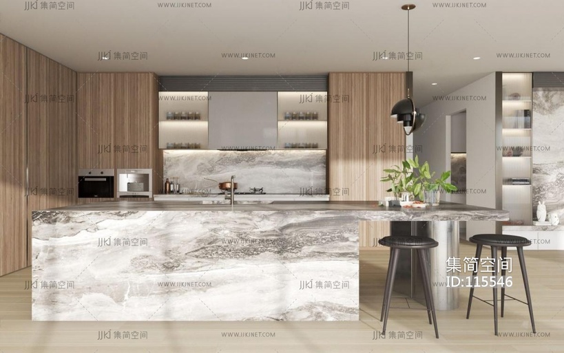 现代轻奢开放式厨房 3d模型下载 [模型ID:115546]