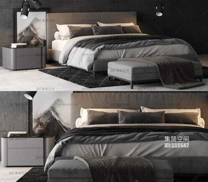 现代布艺双人床 3d模型下载 [模型ID:115547]