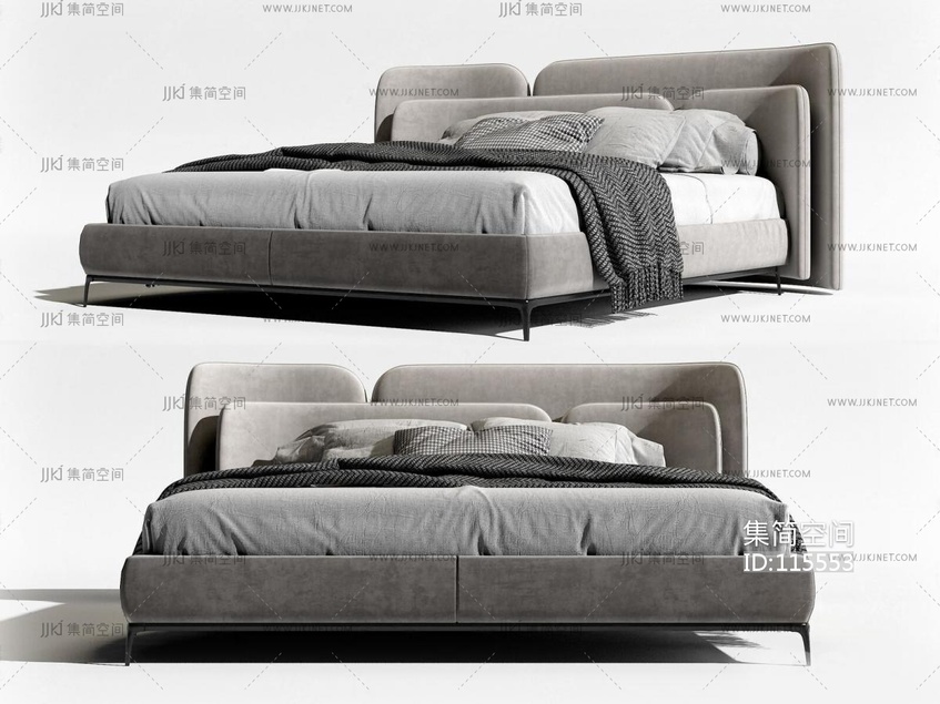 现代布艺双人床 3d模型下载 [模型ID:115553]