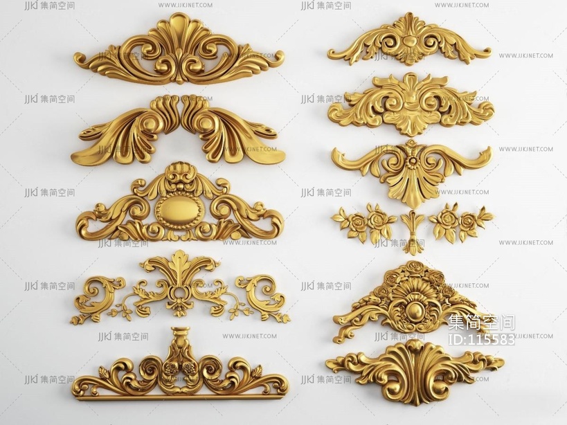 欧式镀金雕花构件 3d模型下载 [模型ID:115583]