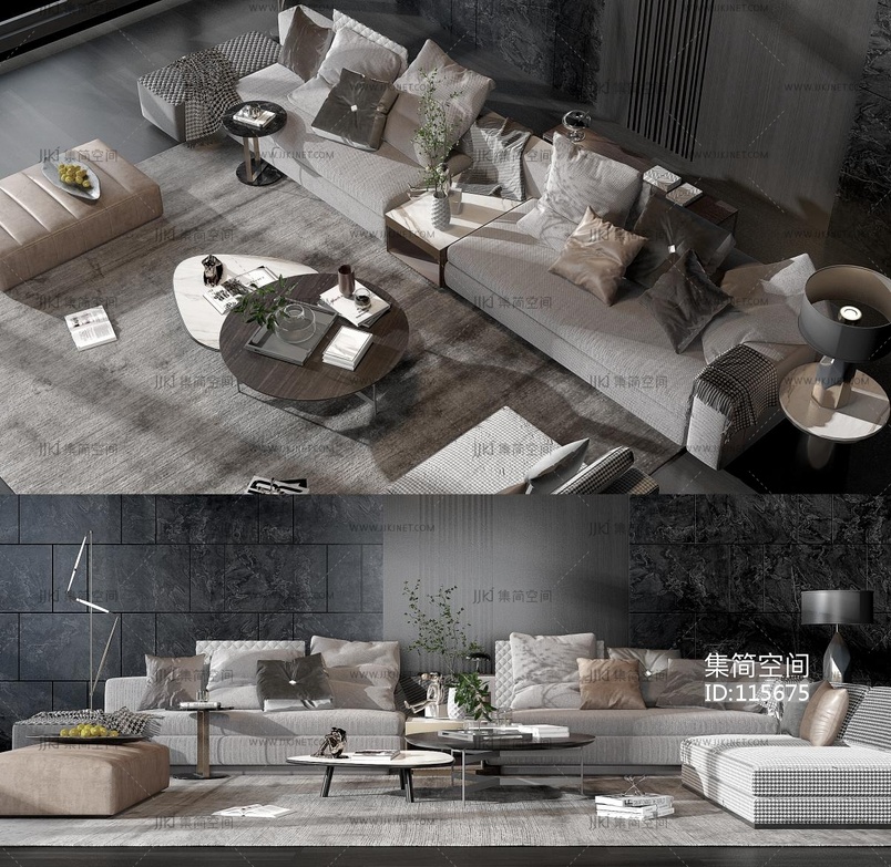 minotti 现代沙发茶几组合 3d模型下载 [模型ID:115675]