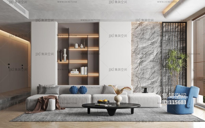 侘寂布艺转角沙发组合 3d模型下载 [模型ID:115683]