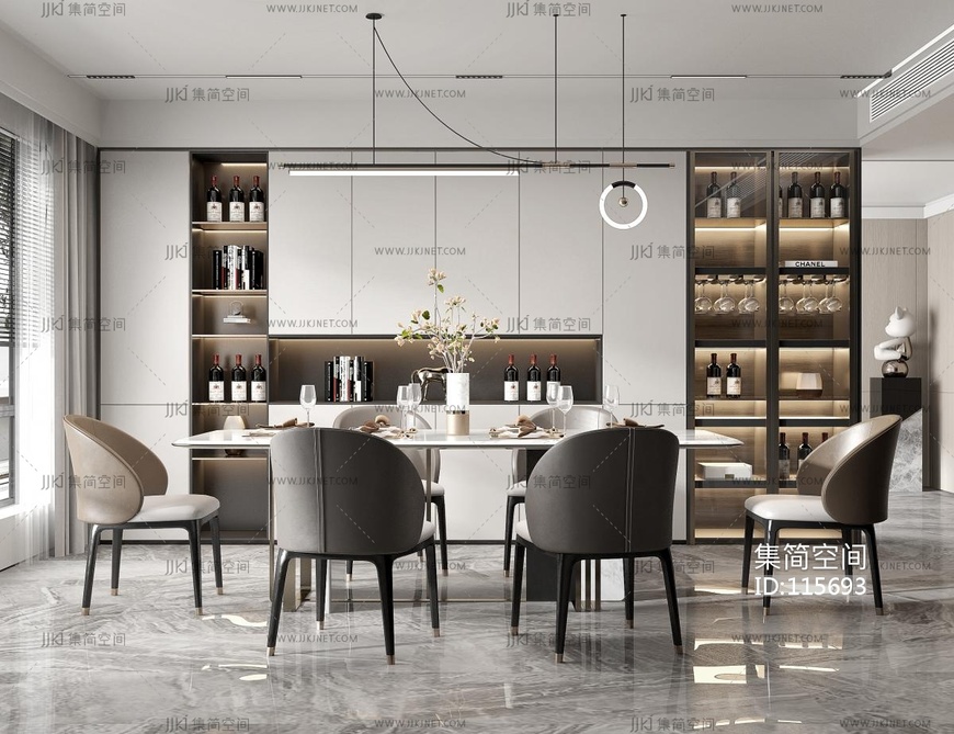 欧式古典餐厅古典雕花餐桌椅 3D模型3d模型下载