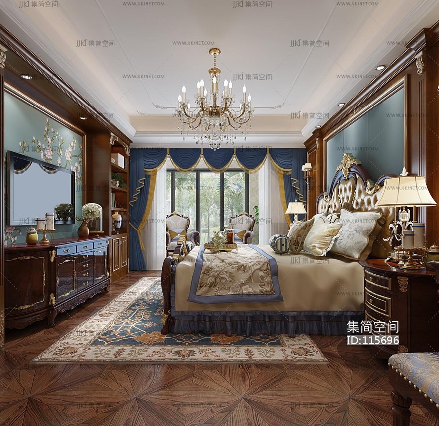 欧式古典卧室 3d模型下载 [模型ID:115696]