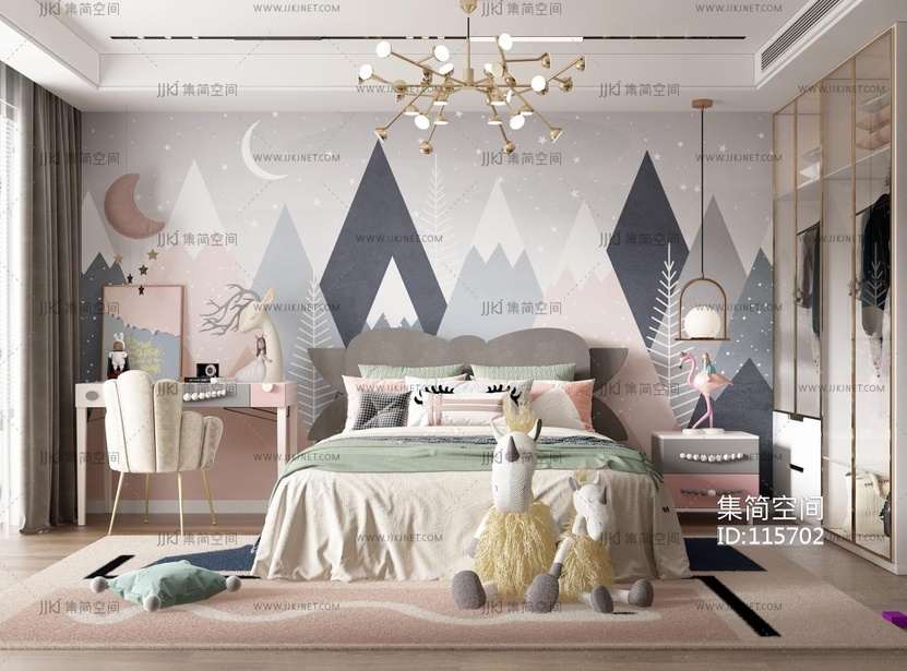 现代儿童房 女孩房 3d模型下载 [模型ID:115702]