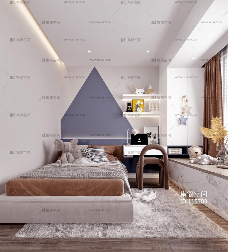 现代儿童房 女孩房 3d模型下载 [模型ID:115703]