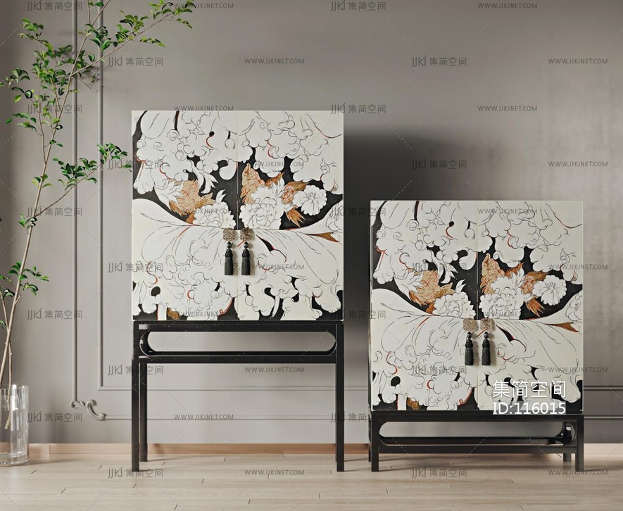 新中式装饰柜装饰画 3d模型下载 [模型ID:116015]