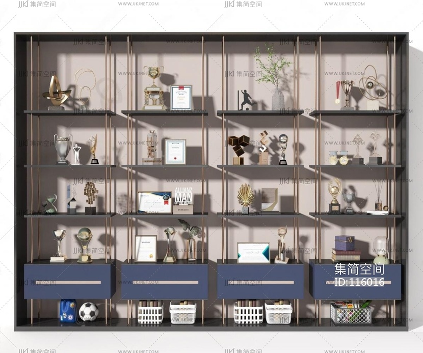 现代奖杯奖状荣誉证书摆件组合 3d模型下载 [模型ID:116016]
