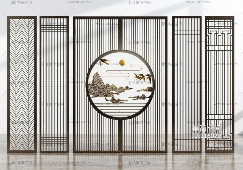 新中式花格屏风 3d模型下载 [模型ID:116020]