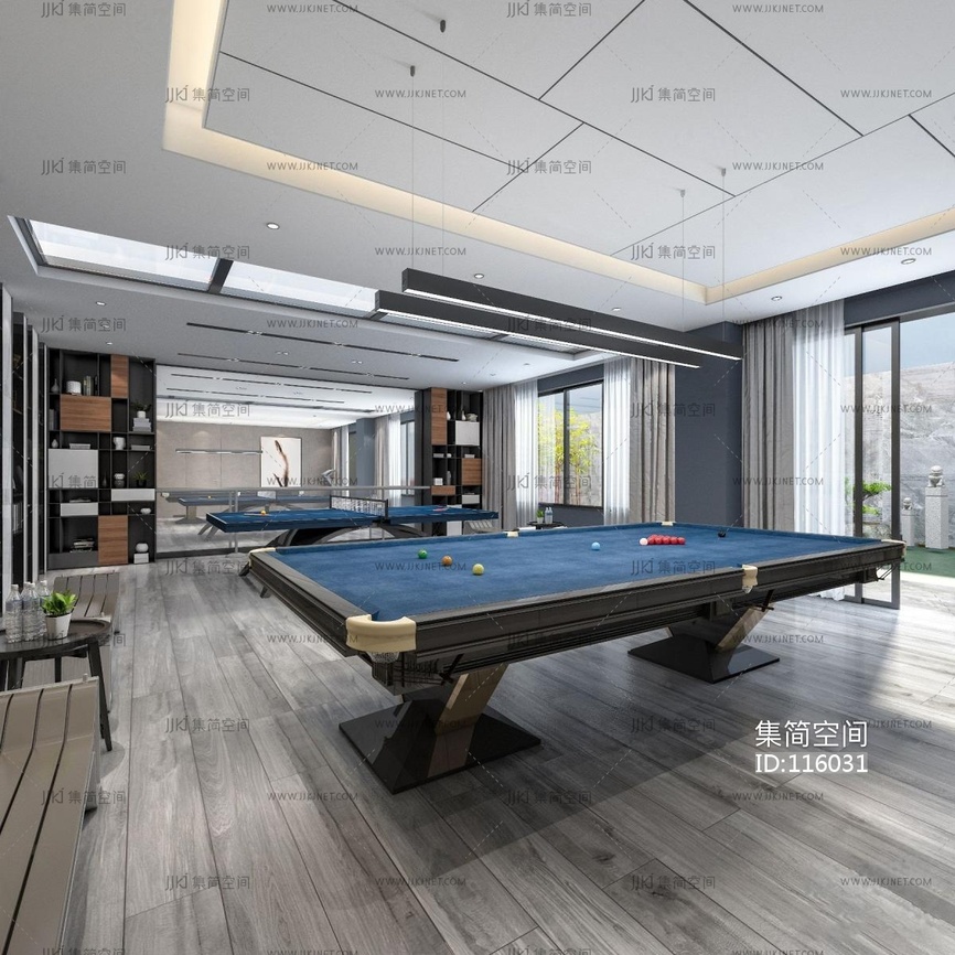 现代休闲乒乓球桌球室 3d模型下载 [模型ID:116031]
