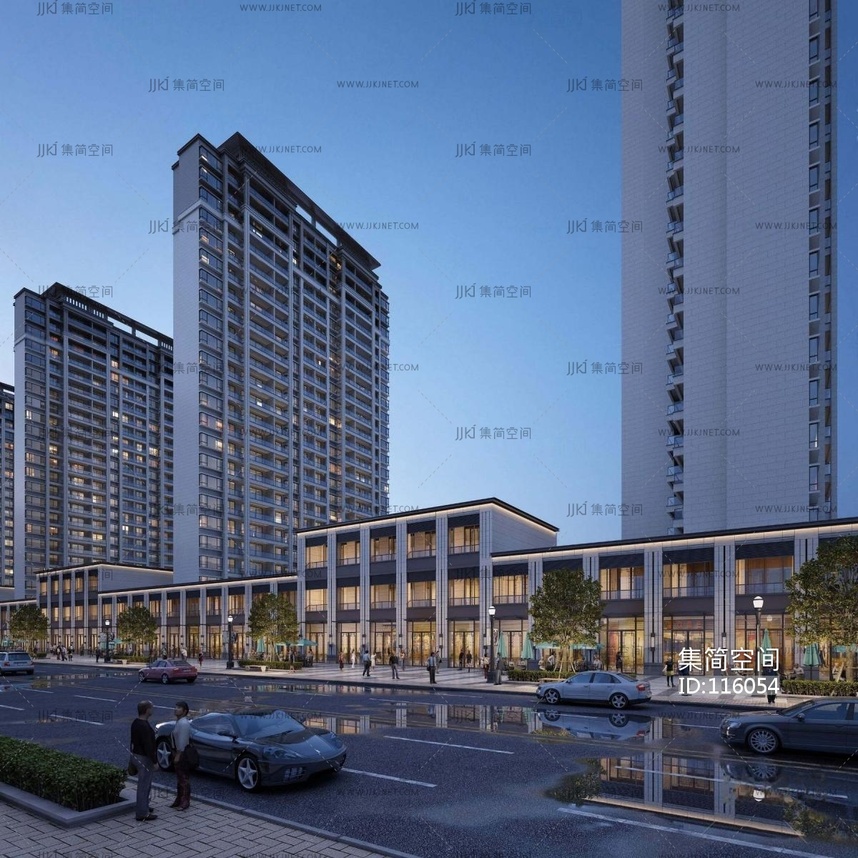 现代商住楼外观夜景 3d模型下载 [模型ID:116054]