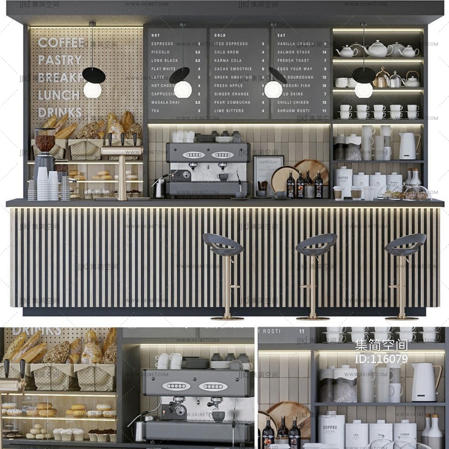 现代咖啡厅工作台 3d模型下载 [模型ID:116079]