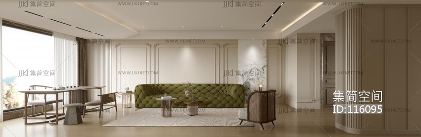 中古风客厅 沙发茶几组合 背景墙3d模型下载