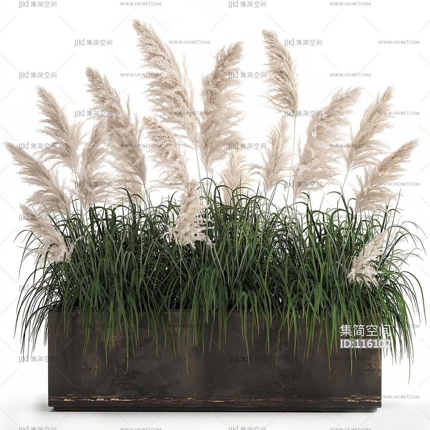现代狗尾巴草芦苇草花钵 3d模型下载 [模型ID:116102]