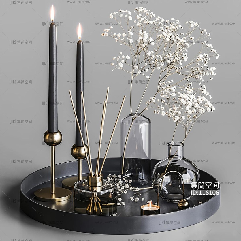 现代简约蜡烛_金属烛台_玻璃烛台_烛台_书本烛台摆件3D模型3d模型下载