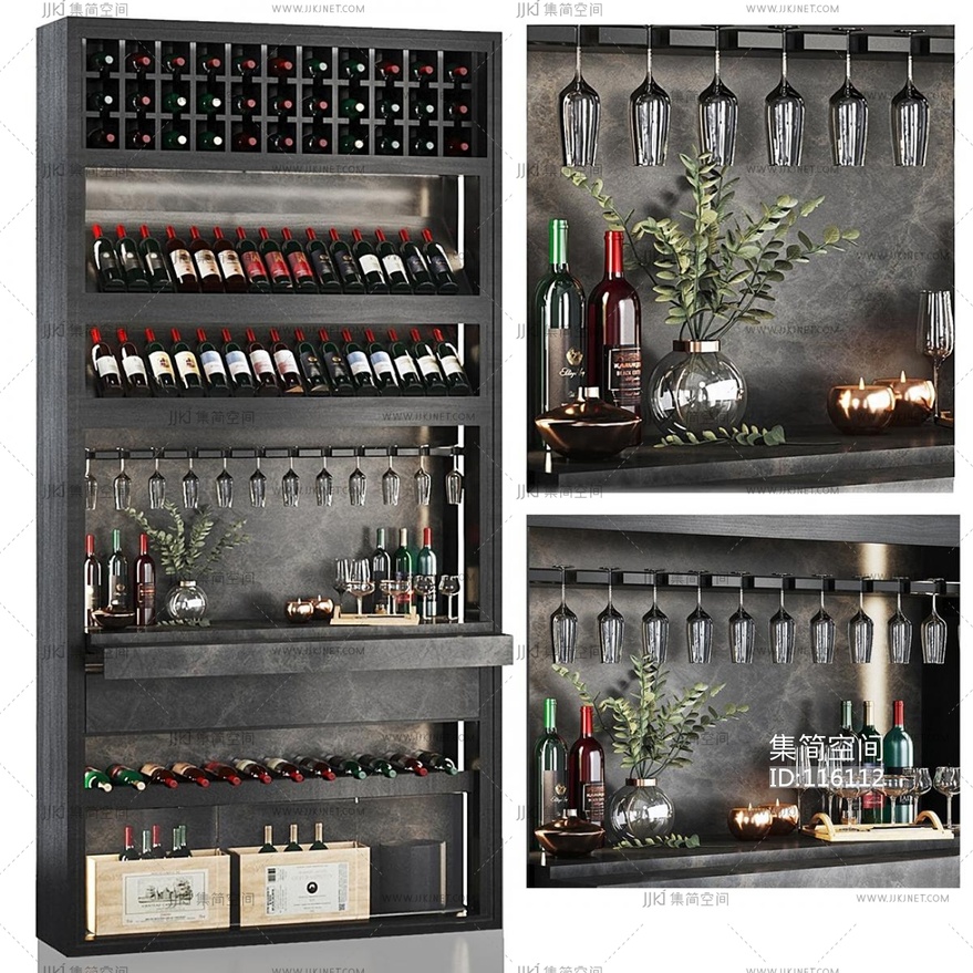 现代酒柜圆柱形酒柜酒瓶子红酒高脚杯3D模型3d模型下载