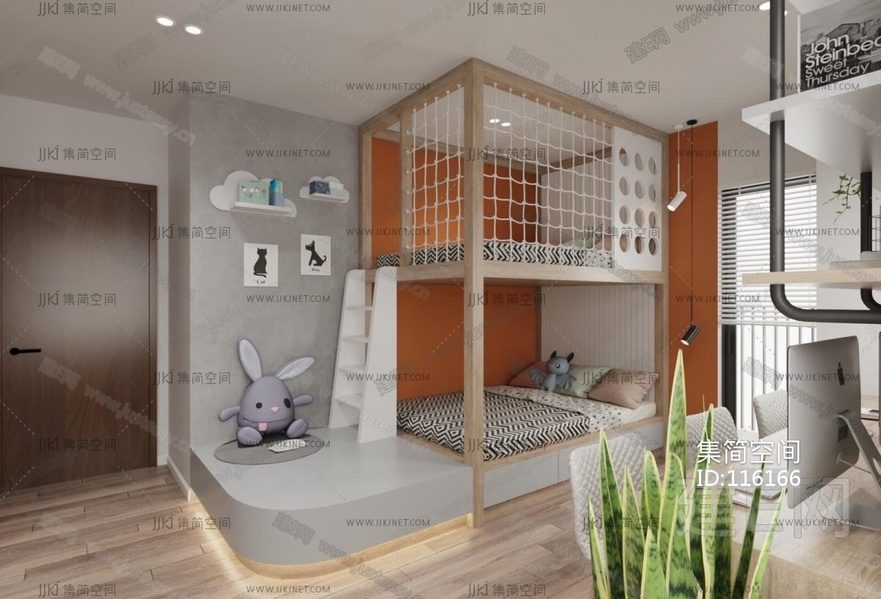07-现代儿童房,儿童床学习桌-3d模型下载