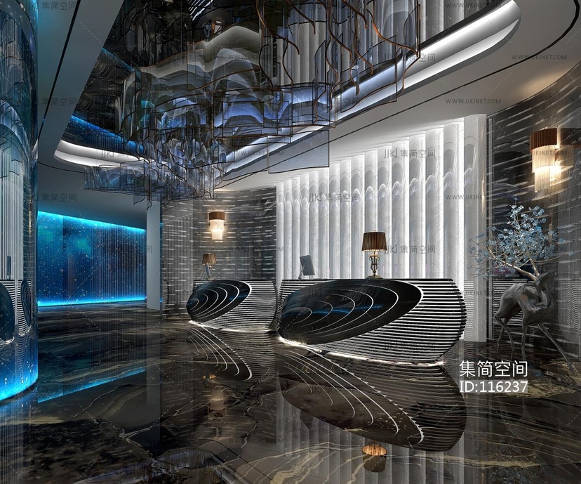 现代ktv酒店会所接待大厅 3d模型下载 [模型ID:116237]