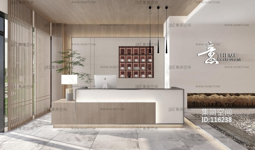 新中式酒店会所前台 接待台 3d模型下载 [模型ID:116238]