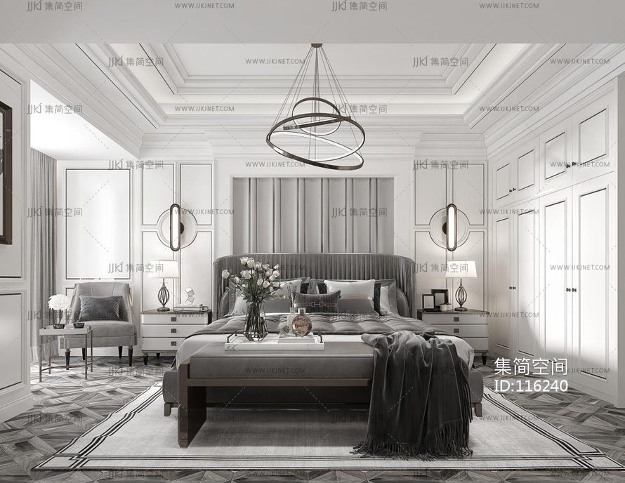 6法式中古家居卧室_主卧_飘窗卧室_高级灰卧室3D模型cr3d模型下载